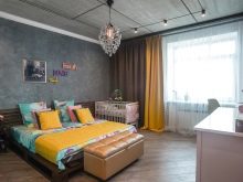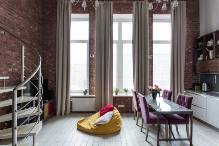 Having stopped on the Roman curtains, think over color scale.The beauty of Loft style is that the shade of the curtains do not have to overlap with the shades of the surrounding interior.