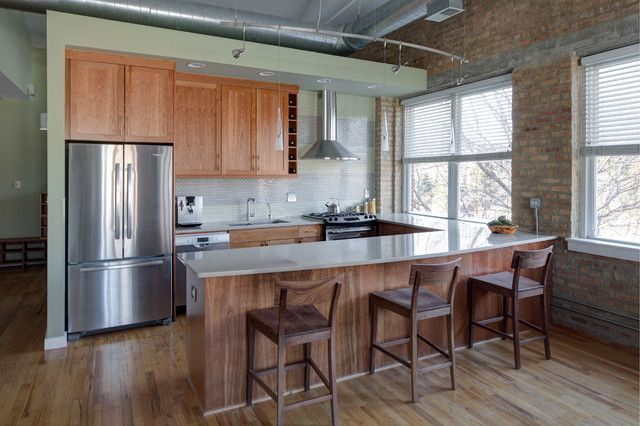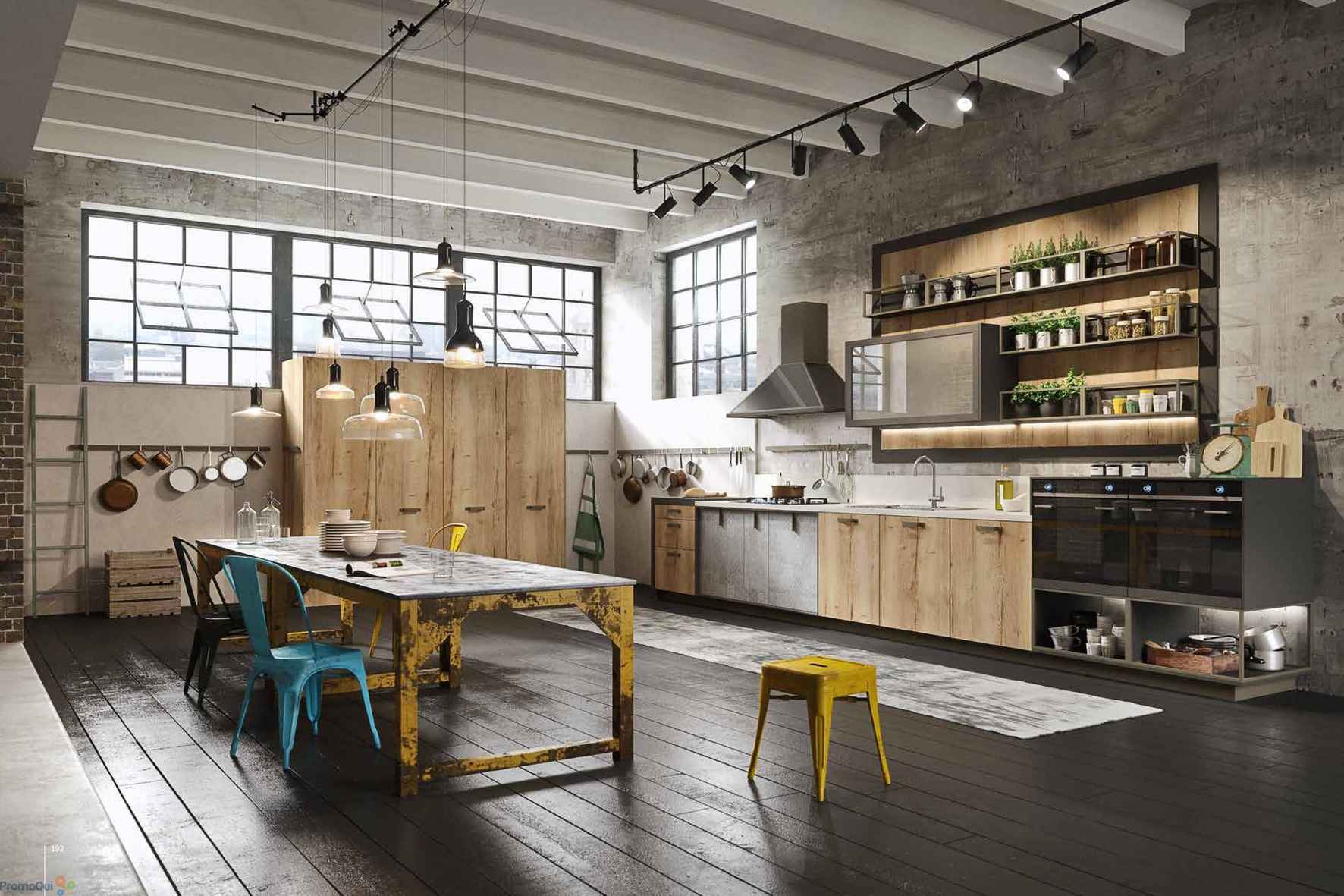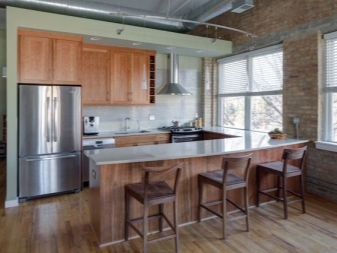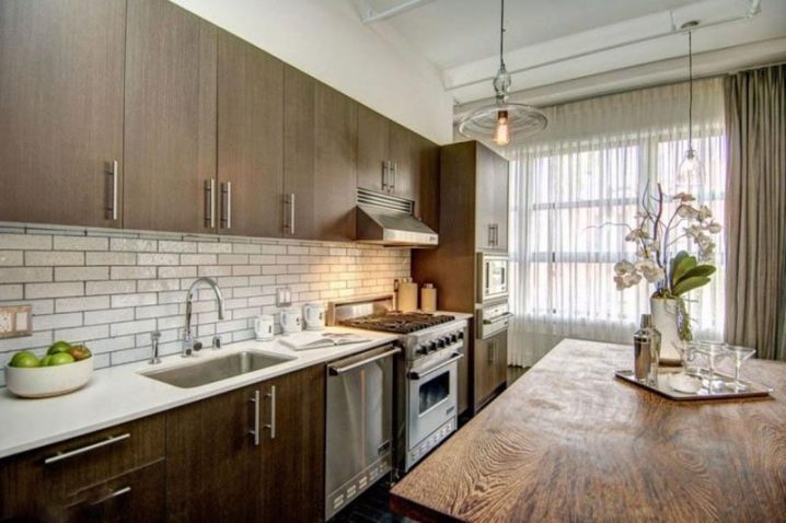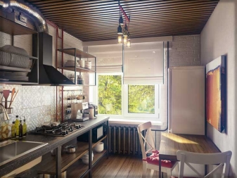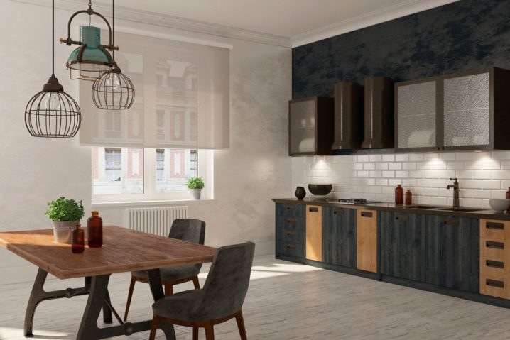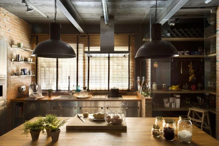 Very often the windows in the Loft-style kitchens are left without any curtains at all, with an emphasis on such a component as the frame. If an interesting construction window is installed in your kitchen and you do not live on the first floor, think about this option.