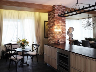 If you dwell on the colors, Loft also provides color solutions for window decoration in the kitchen. Light khaki or cold beige are frequent guests in the interior of this style. They are not out of the overall compositional solution, while at the same time creating a hint of an environmental note in the interior. The curtains of these shades will also not notice the dirt, which makes the choice in their favor optimal for the kitchen space.
