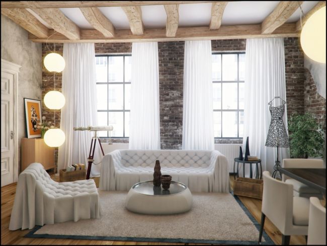 Loft style originated in the 40s of the last century in the United States. Large enterprises moved to the suburbs, and the empty buildings were sold "under the hammer." Bohemian representatives took the chance and quickly bought up empty huge buildings in the very center of Manhattan, transforming them into creative studios and at the same time living quarters. Especially on the design, they decided not to work, leaving a lot of industrial elements: raw walls, huge windows, brick walls, open ceiling beams, and so on. Soon this direction turned into a separate style, imbued with the spirit of freedom and creativity.