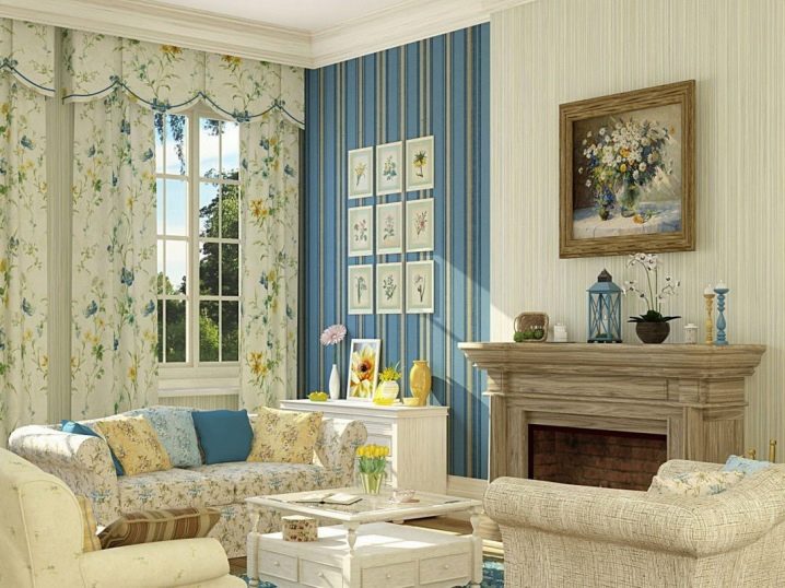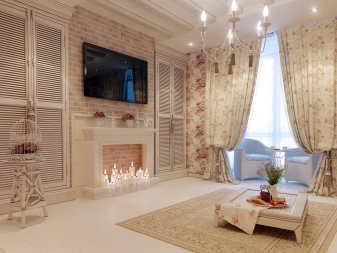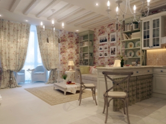 Pay attention to the unusual design finds, when the curtains in the style of Provence monophonic, but the walls are decorated with wallpaper with a bright and large pattern. For example, the wallpaper is white with red roses, and the curtains are just white. Such chips are best done in large rooms, where there are several windows: so parts of the colored wall will be thinned with plain curtains.