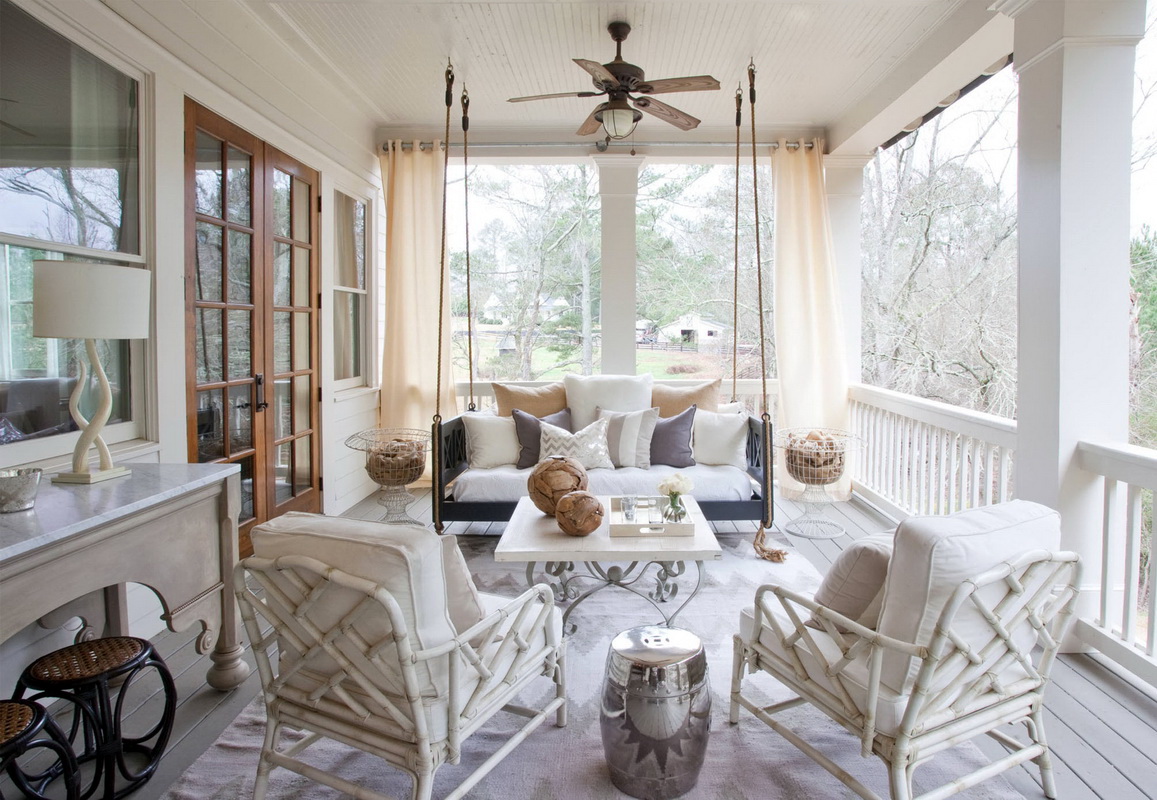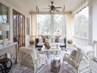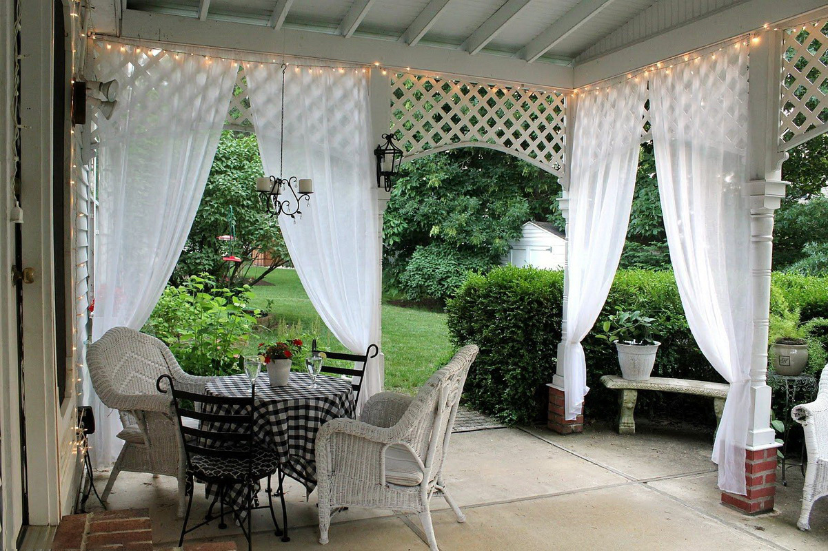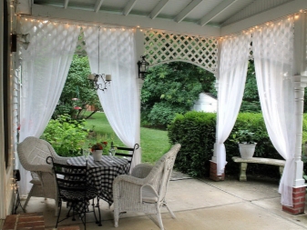 - Choosing curtains in the gazebo or on the veranda, proceed from the size of the windows and the room itself. If they are small, it will be enough simple curtains or curtains cafe. In general, you can only cover them with top lembrecenes, and leave the windows themselves open for daylight penetration. Large windows can be covered with curtains. Usually in the gazebo or on the veranda there are a lot of small windows - each one can hang a curtain. Decorate windows can be Roman or Austrian curtains, hanging them on each doorway.
