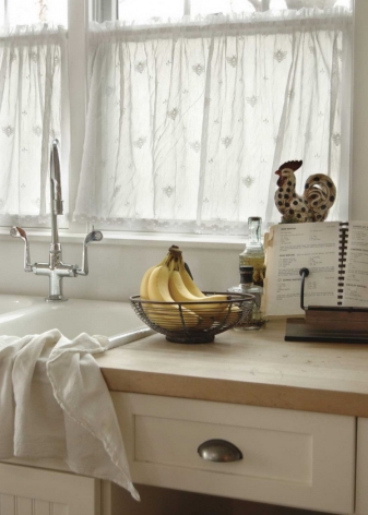 It is also better to prefer the short version if, for example, in your kitchen, the stove is close to the window. For security reasons, it is better to choose short curtains for those who have small children and pets.