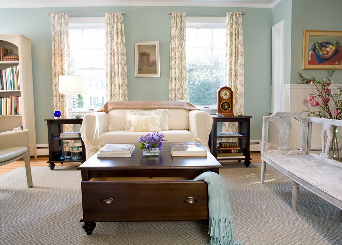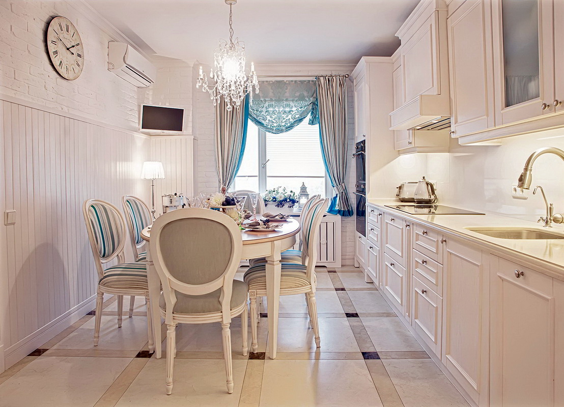 - Bright interior. Preferred colors: white, delicate yellow, mint, light blue, turquoise, beige.