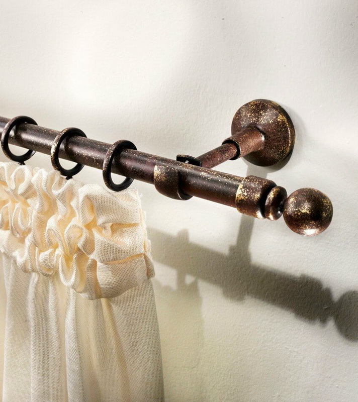 Provence involves large windows that should be covered with curtains. No plastic eaves or roll systems! The classic of the genre is wrought round cornice (or made “forged” in the colors of aged metal) and delicate air curtains. For particularly resistant to curtains - wooden blinds.