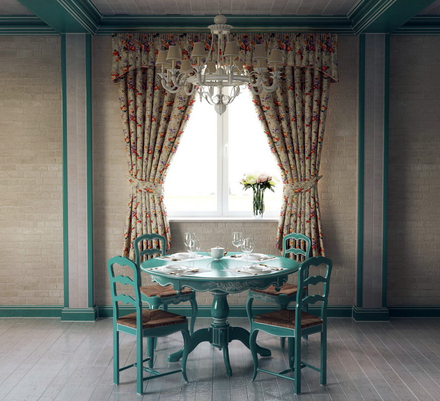These are versatile options that will look very Provencal. The color of the ornament can be selected on the basis of the overall color dominant in the room.