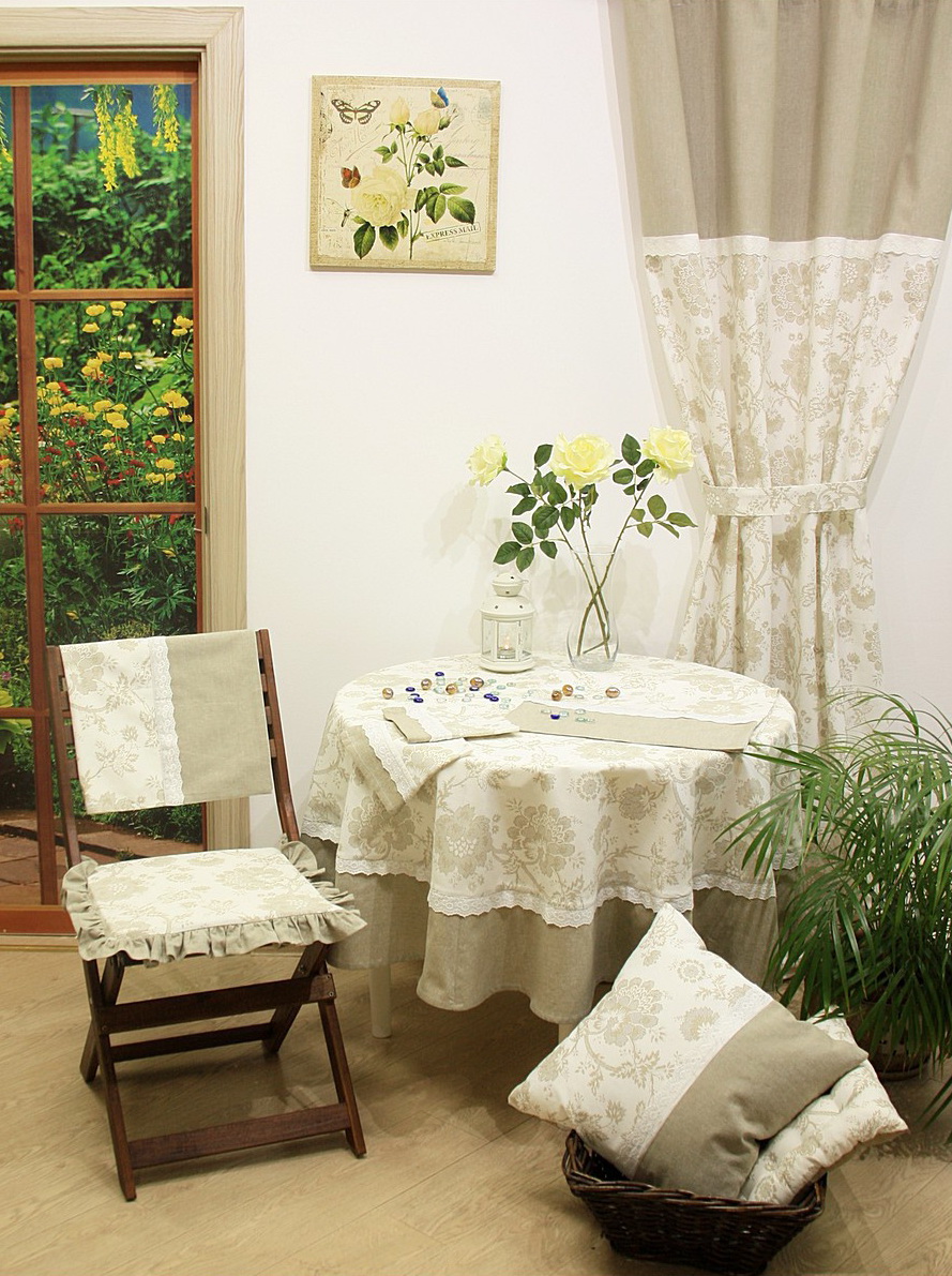 Curtains in the Provencal style are, of course, light fabrics. The easiest option is light white curtains. It is preferable, of course, fabric with flower padding. Therefore, most hostesses prefer to hang curtains with a floral pattern on a white background. Flowers can be both small and large - small ones look cute and simple, large ones - more elegantly.