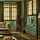 - For closing small-sized windows use screens. Their second name is roller blinds. The cylindrical housing is installed above the window. It is equipped with a mechanism that folds the canvas structure. Such a kind of textiles is still gaining popularity in our country.