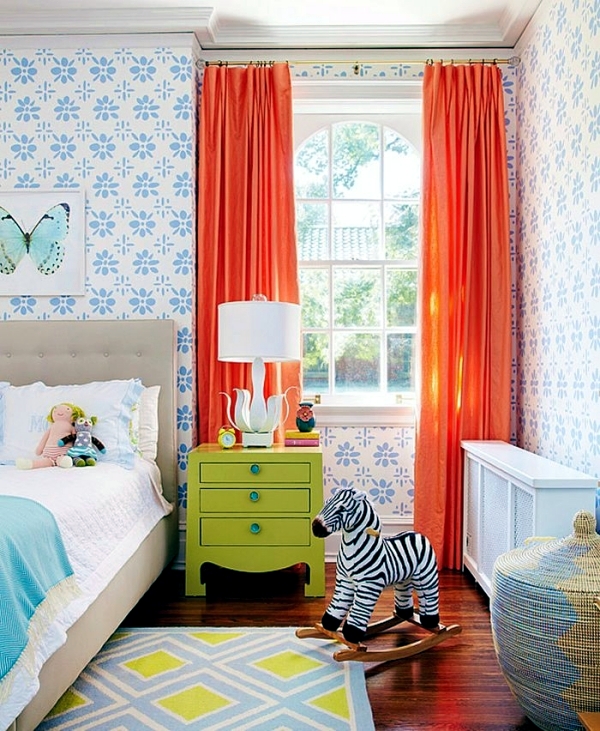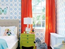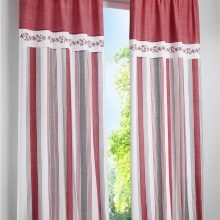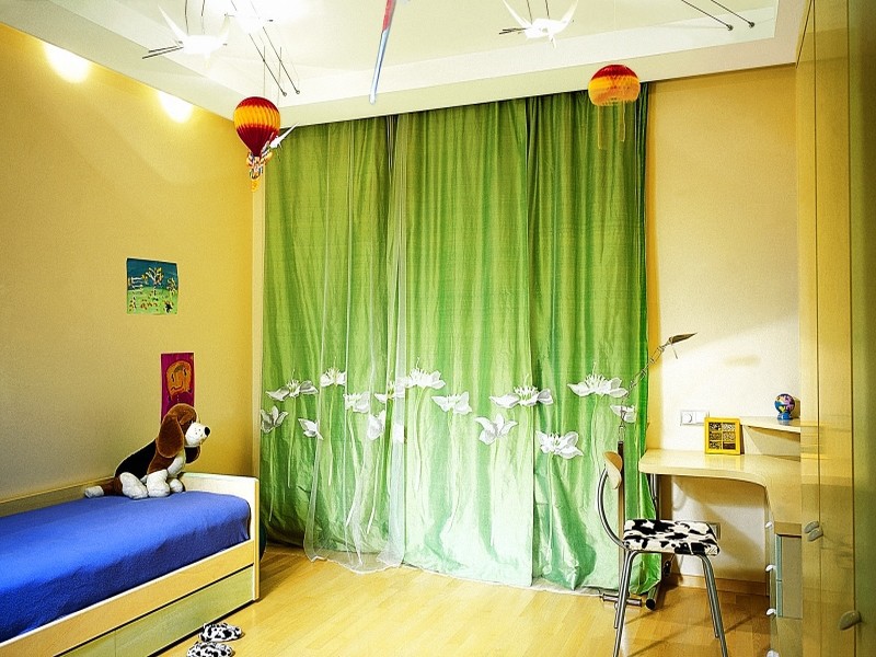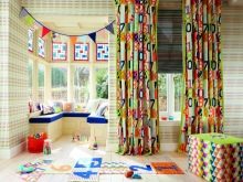 - In the room for a child suitable curtains made from natural materials. It can be classic curtains of any bright or light shades or playful models in the style of Country. It is recommended to choose a curtain up to the window sill or slightly lower. Small children may be interested in long curtains and spoil their presentable appearance during the game.