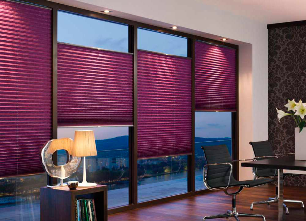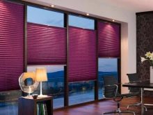 - Popular team models are pleated curtains, which are presented in the form of folded "harmonica" matter. Visually, these curtains are similar to blinds. They are fixed in the opening with a small mounting profile and reliably protect the room from the sun's rays. The fabric from which such models are made is not prone to fading and will always please the eye with rich colors.
