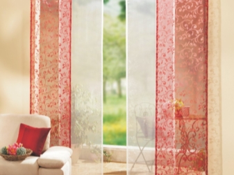- Chinese curtains - great way to convey oriental flavor. They are usually made from translucent light-colored fabrics. Fabric cloths strictly correspond to the size of the window opening. They are provided with a vertical colored ribbon in the middle. Such curtains are very easy to transform into the assembled state, transforming them into a simple roll or into a design with folds.