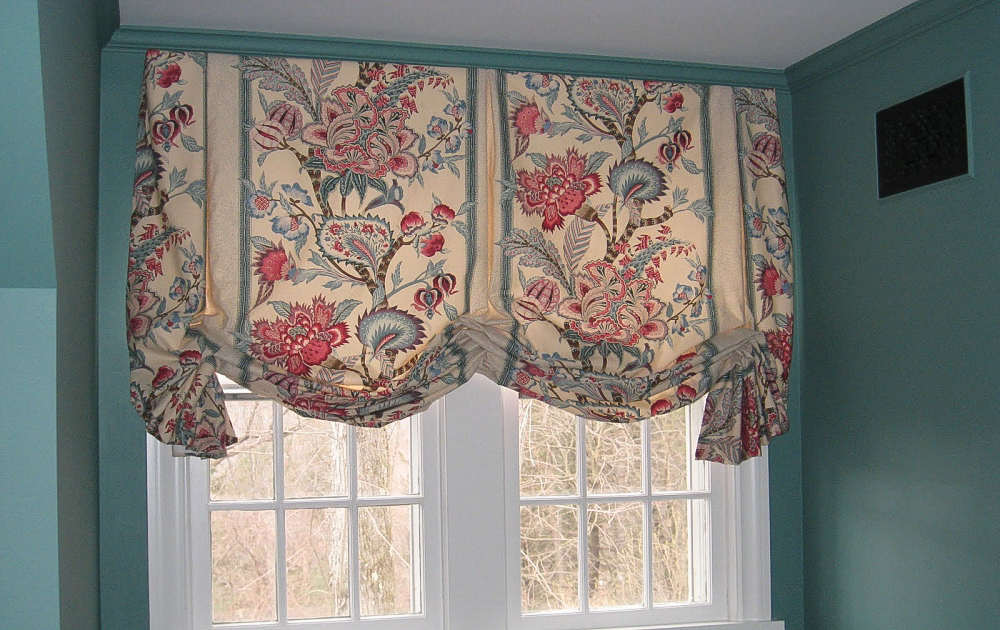 - A great option for room decor will be London curtains. They are not as multifunctional as other models, but are great as an interesting detail. Such products rise to the top and secured in this position with the help of special tapes. Often they are painted with an English-style print.
