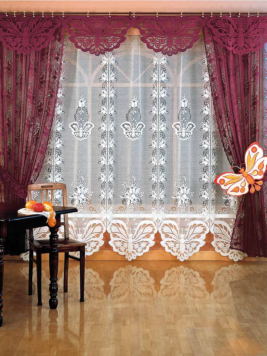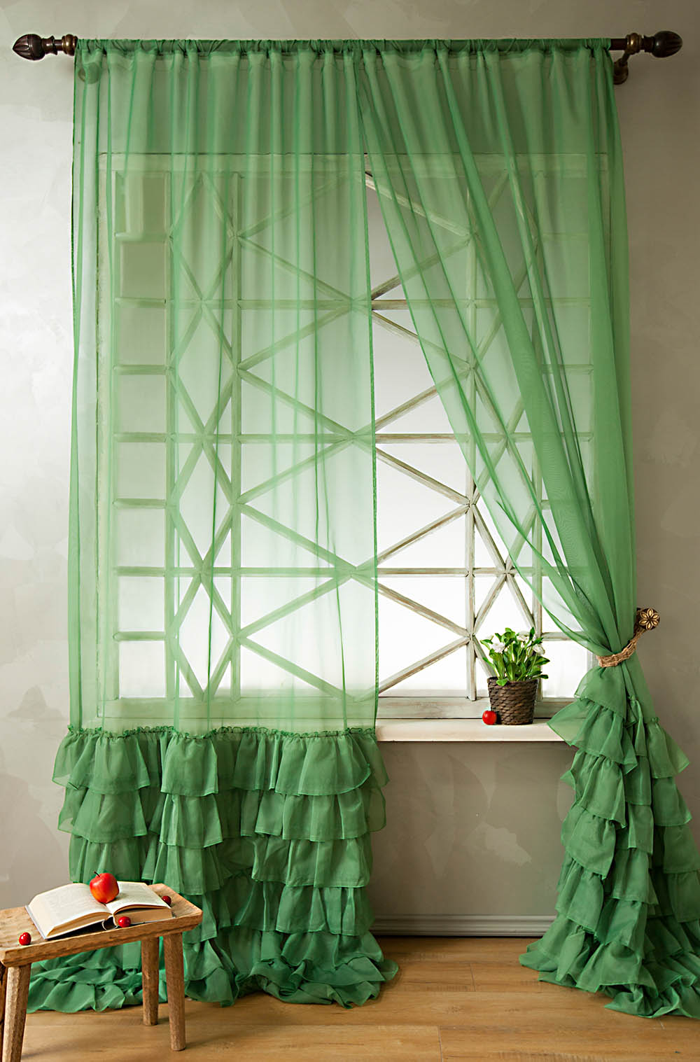 - In rooms that need to be lit up, it is recommended to hang lace curtains. Elegant fabrics such as batiste, organza or veil perfectly fulfill the function of tulle curtains. They can be decorated with lurex, contrasted with thicker curtains, or be similar to the shade.