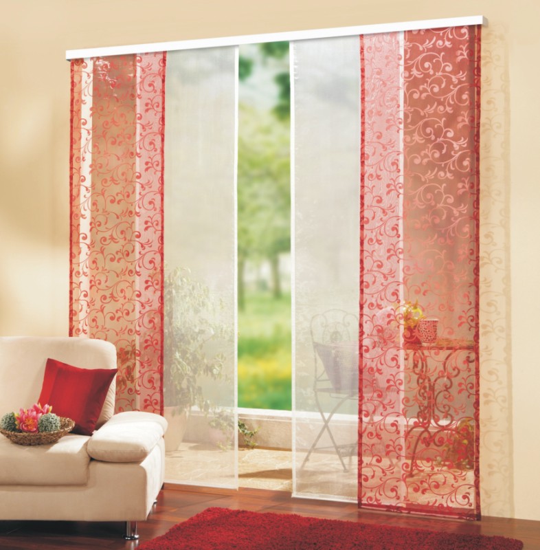 - For living room massive tapestries will do, because the windows in the hall are often larger than in the other rooms. The style of the product can be almost anything. Curtains in Japanese and Austrian styles look especially impressive.