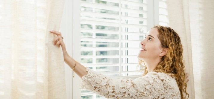 - A separate type of window decor are jalousie. These products look like a set of horizontal or vertical plates arranged on a common mount parallel to each other. Using a lifting, sliding or rotating mechanism, the plates take different positions, adjusting the intensity of the light entering the room. Plates can be made of metal, plastic, wood, fabric, and many other materials.