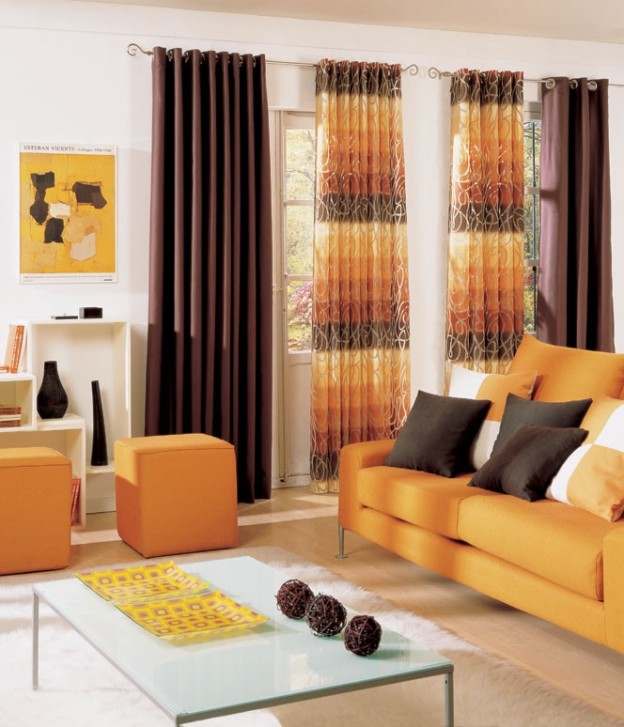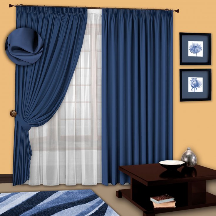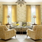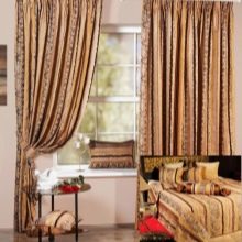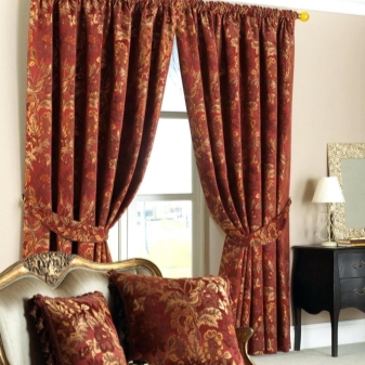 Mostly curtains are made from materials such as gabardine, jacquard, velvet, satin. Jacquard fabrics look very rich, solid, but not suitable for decoration of small rooms. The same applies to soft dense tissue. For example, velor canvases perfectly emphasize the size of a large living room, at the same time isolating it from excessive noise and drafts.