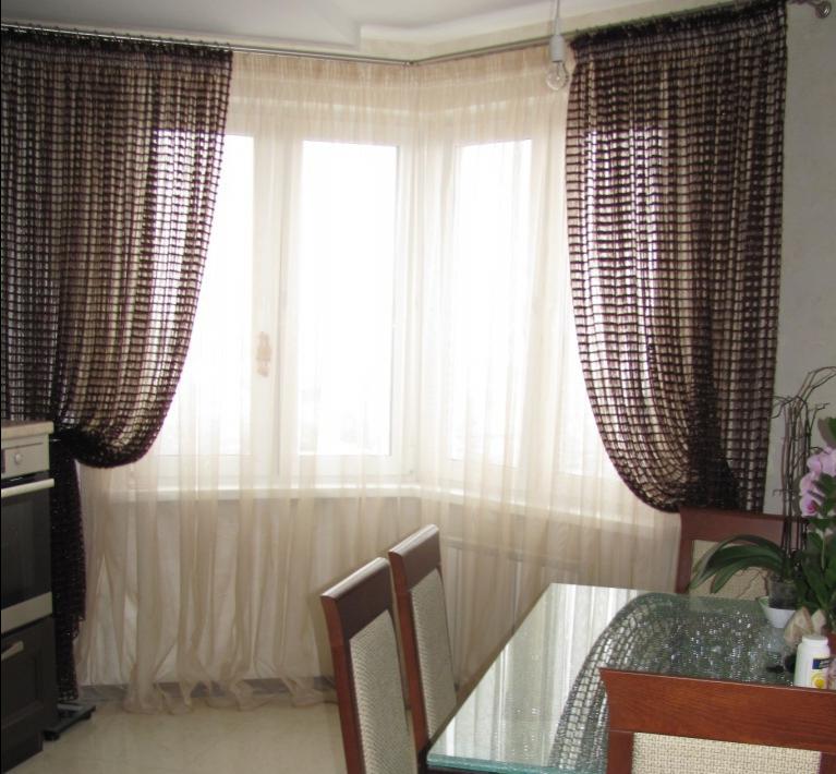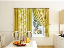 Short curtains of organza or polyester fit perfectly into the interior of the kitchen. They are very easy to care for, so that they can easily withstand frequent washing, and in which case they can be easily replaced with new ones without any special damage to the budget.