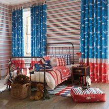 For the nursery, as for the bedroom, preference should be given to natural matter. It is advisable to choose fabrics with a pattern, so that it would be interesting for the child to look at the pictures on the windows.