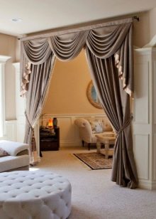For lambrequin it is better to choose the same fabric from which the curtains were sewn. If this is not possible, select at least similar colors of materials.