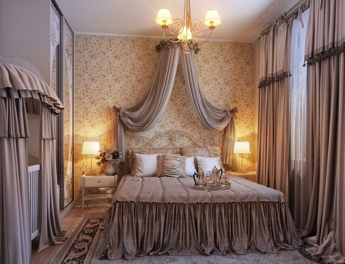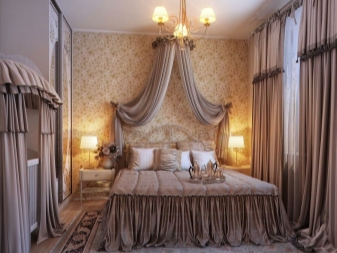 Choosing curtains, look at the silk or linen, depending on the style of the room. Such options are expensive, but you can not save on the curtains in the bedroom. An interesting solution will be curtains of mesh, knitted from cotton yarn.They will protect your privacy, while not hindering the penetration of light.