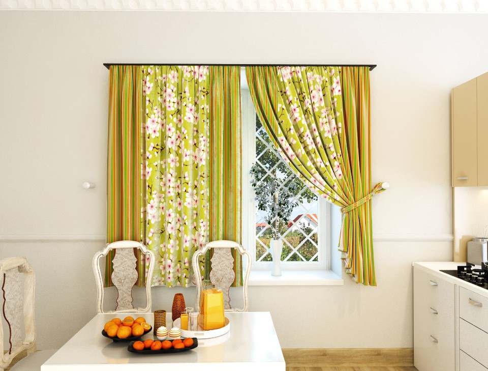 In the kitchen, on the contrary, it is not advised to buy curtains from natural matter. Synthetics are much more suitable if we are not talking about the space above the stove: then it is better to choose linen roller or roman blinds.