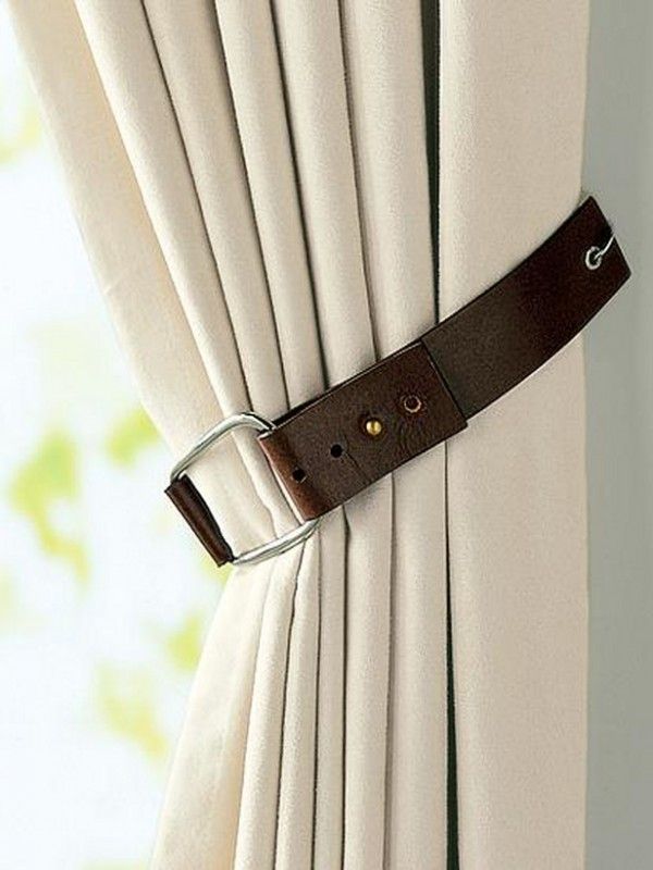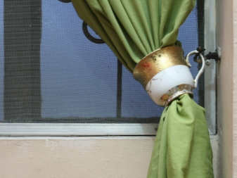 For example, in the kitchen for the original curtain clip, you can use the dishes. To do this, remove the bottom in a beautiful cup, hang it on a hook attached to a wall or window, and pass a curtain through the hole. The decorative clip is ready. It has become fashionable to use cutlery, for example, forks and spoons as clips for curtains. It is necessary only to bend them in half, and the curtain is tucked into a kind of pickup.