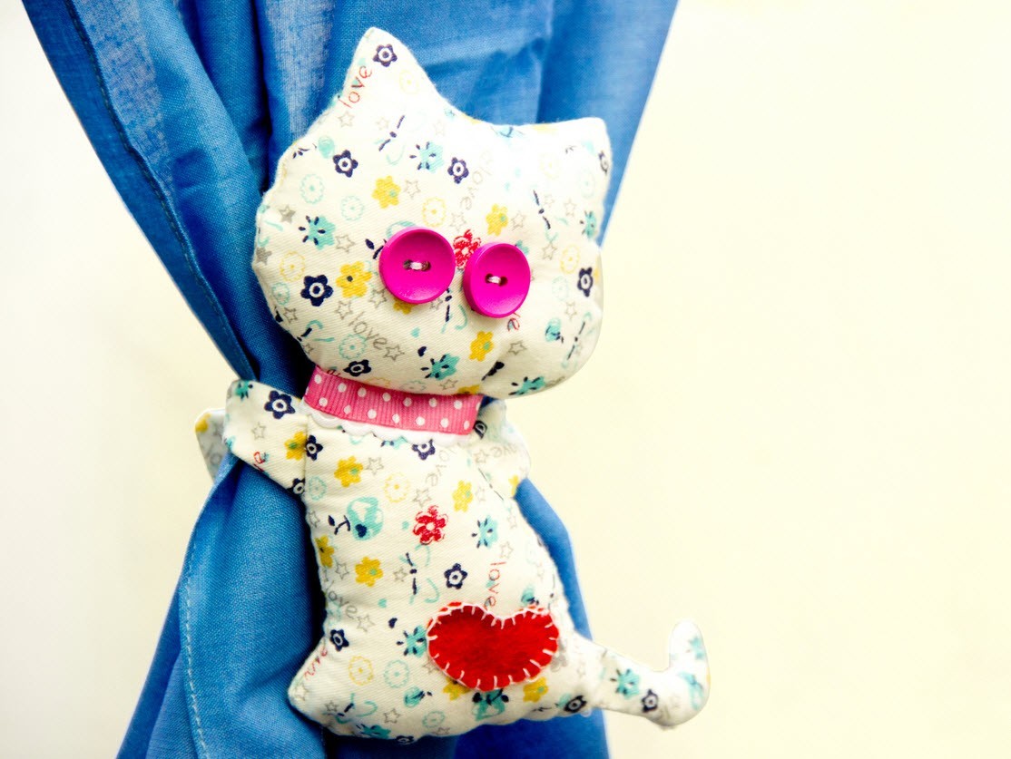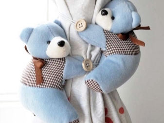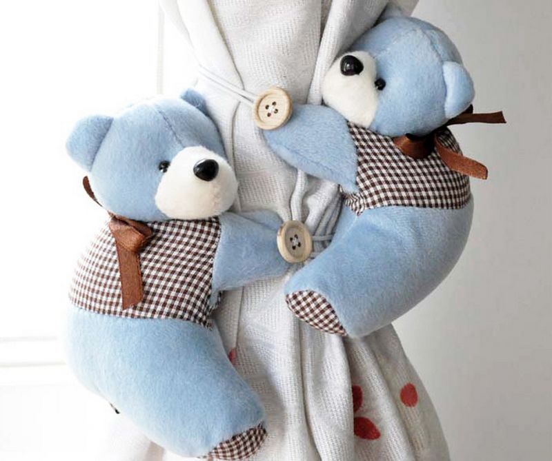 Children's room is also a place to experiment. It is possible to decorate the curtains here even with soft toys, they make funny clips for curtains.