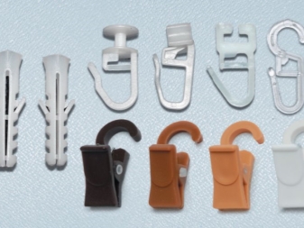 Stationary clips are often made in the form of hooks, they are mounted on the wall next to the window opening. These clips help hold curtains, curtains or curtains.