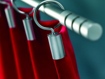 - metal clothespins most common. They are characterized by durability, low price, combined with different types of curtains, while maintaining a large weight. Among the disadvantages there is a tendency to corrosion, rust may appear on the fabric.In form, they are very different. Recently, the cylinder has become a popular and fashionable form. Clothespins are reliable, durable. In the metal there are products with gold or silver plating. Beads, sequins, satin are used as an additional decoration.