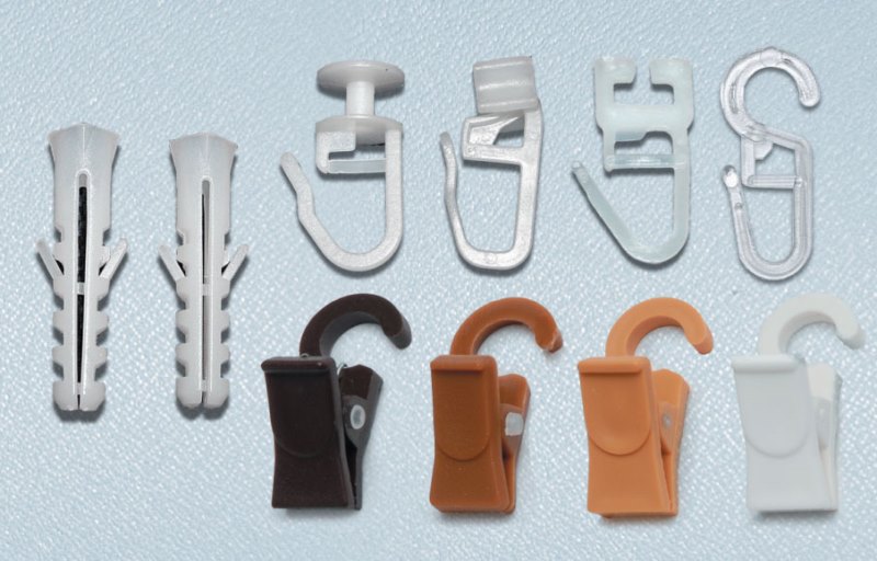 - plastic - a budget option. Presents a rich palette of colors and a wide variety of options. They differ in that they are used exclusively for light fabrics, as plastic curtains simply won't hold massive curtains;