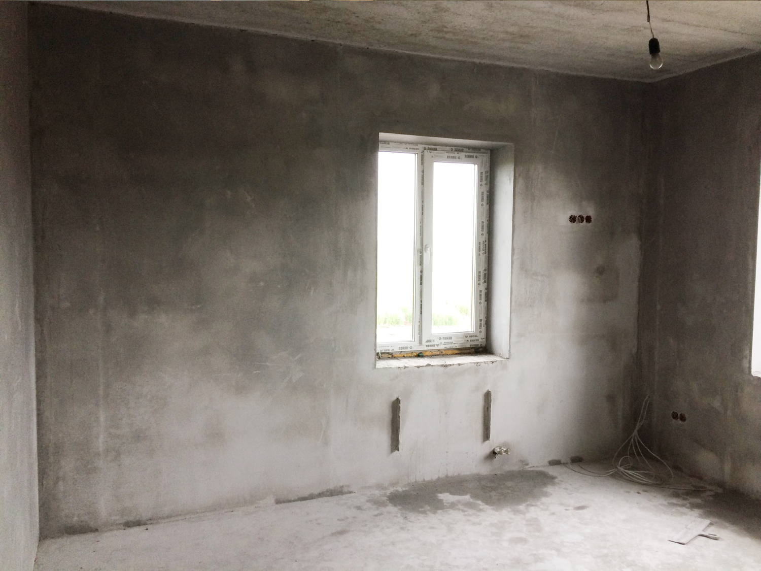 - Simple compositiondesigned for interior walls. The walls are covered with mortar in two stages: spray and primer. Most often, the composition is used to seal irregularities and cracks in the walls, sometimes it is used for hygienic surface treatment. When applying simple plaster there is no need to put construction beacons on the walls.