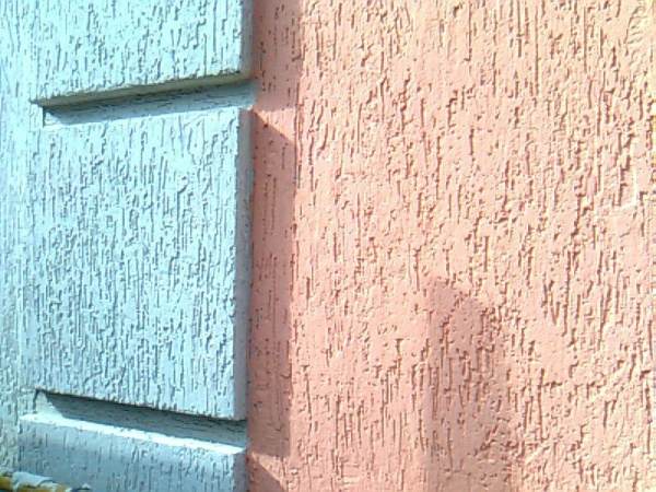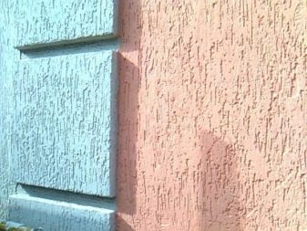 - Facade plaster "Bark-eater" lends itself well to staining, and with the help of unevenly applied strips it is possible to impart a special shade to the surface.
