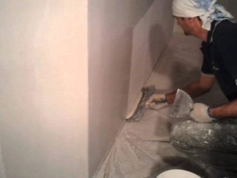 - Masking defects. After the initial treatment of the base with a layer of primer and its complete polymerization, a starter solution of a creamy consistency is applied to the surface. They do not cover all the walls: the task of the composition is to disguise chipping, dimples and potholes. The layer of coarse-grained material should not be large, as this will lose longevity.