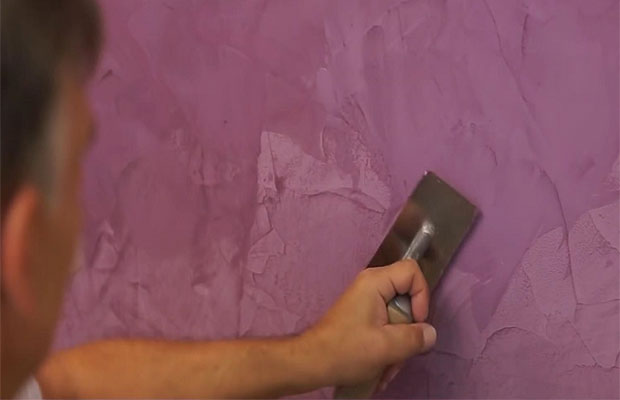 Drawing create not immediately after applying the plaster mass on the wall or ceiling. It is necessary to align it and only then proceed to the decoration. It should take at least several minutes, otherwise, instead of forming a relief, you will lubricate the mass from the surface. An excellent solution would be to use crumpled polyethylene. If you want the pattern to be repeated, you should fix such polyethylene on the paint roller.