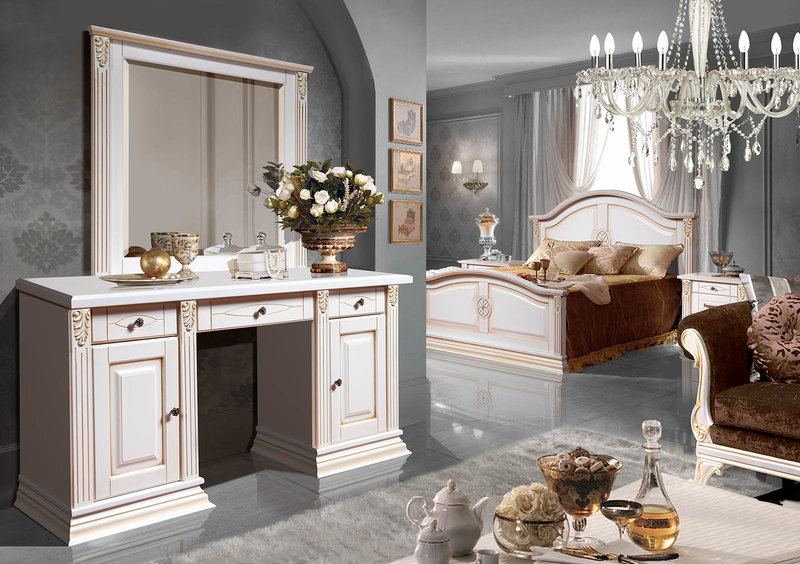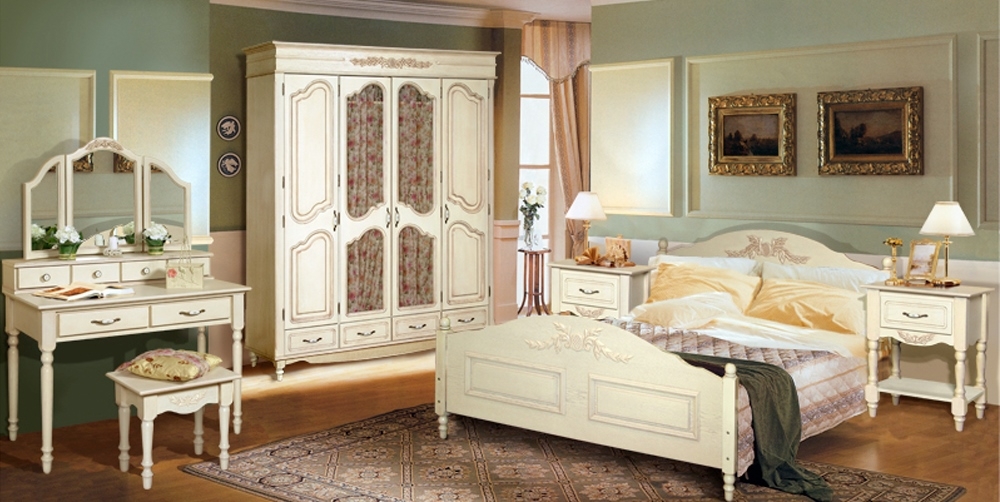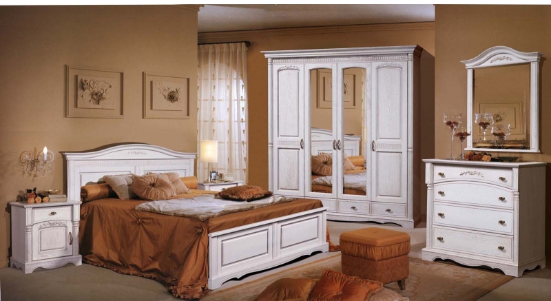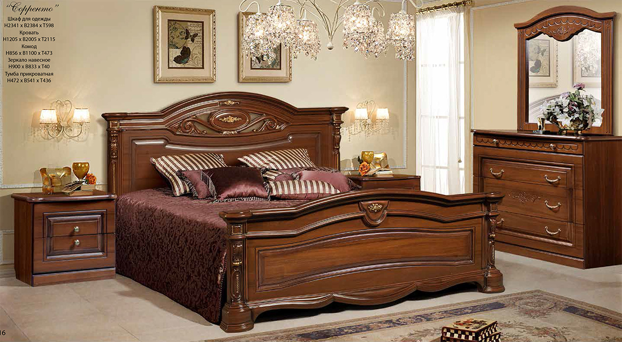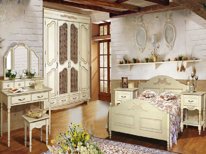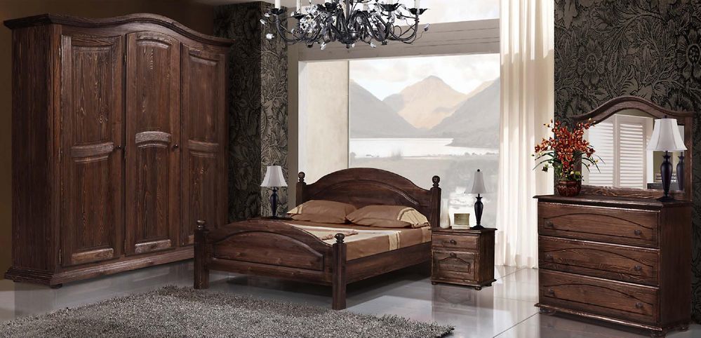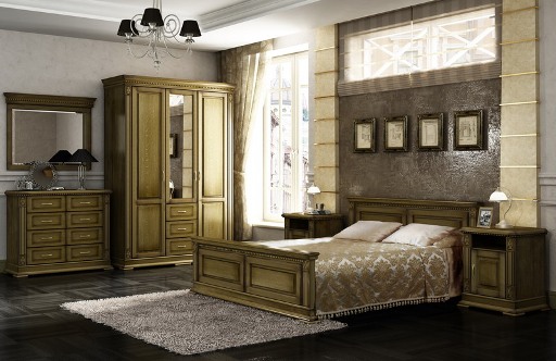 - Under the old days. Manufacturers from Belarus were the first to start producing furniture made in such a peculiar style. Acquiring the bedrooms, made under antique furniture, you can briefly plunge into the past, its comfort and convenience. Such furniture is characterized by the presence of clear lines, exquisite bulkiness, but most importantly - spaciousness and convenience. They are made only from arrays of various species, which are sometimes artificially aged.