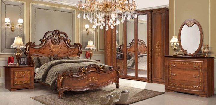 - Classic style. This bedroom is characterized by a stylish design, capacity, comfort, and most importantly, convenience. Depending on the manufacturer, it may consist of several items. Together they allow you to create a cozy interior for lovers of the classics. Furniture in this style is distinguished by its simple elegance, pleasant color and elite sustainability.Production materials are exclusively solid wood of alder, birch, oak, beech and pine trees.