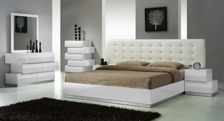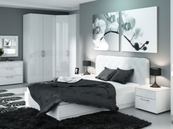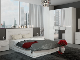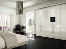 One of the latest trends in interior design is glossy furniture. On the white bedroom in this version is to talk separately.