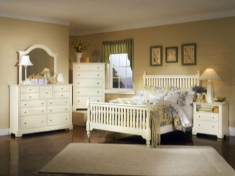 Furniture in this performance is different grace. There may also be smooth lines, carved legs, openwork decor. However, unlike the “palace” version, such a set does not create the sensation of ostentatious luxury and wealth. The bedroom in Provence style looks simple, but cozy and romantic.