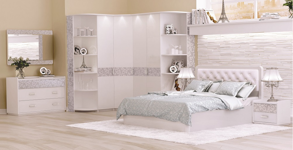 A white bedroom set will be an excellent choice no matter what style in the design of the apartment you prefer. The main thing is to successfully select the curtains, lighting and other interior elements to create a harmonious ensemble.