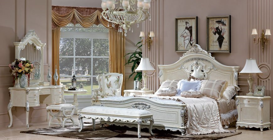 To complement the design of such a bedroom, you can use stucco, porcelain figurines, paintings in the Renaissance style.