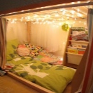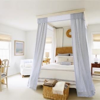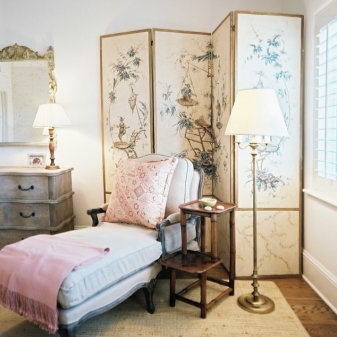 - screen. It is created by assembling a wooden frame, in which there are more than three sections. After creating the frame, we will need textiles. If you use sections of medium size, they should be the same size as the bed width. Sections that are located on the sides should be slightly larger than the average. With the help of a screen, you protect your sleep from bright sunlight and provide extra comfort in the room;