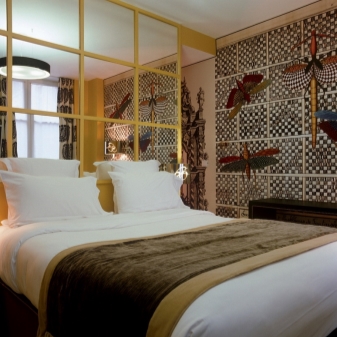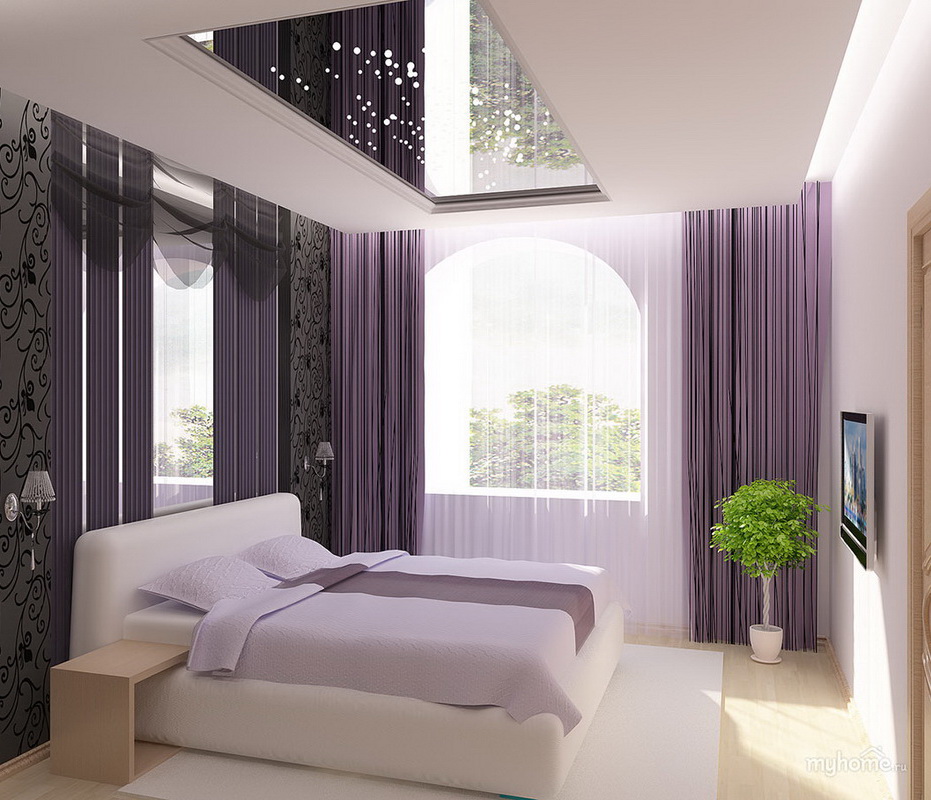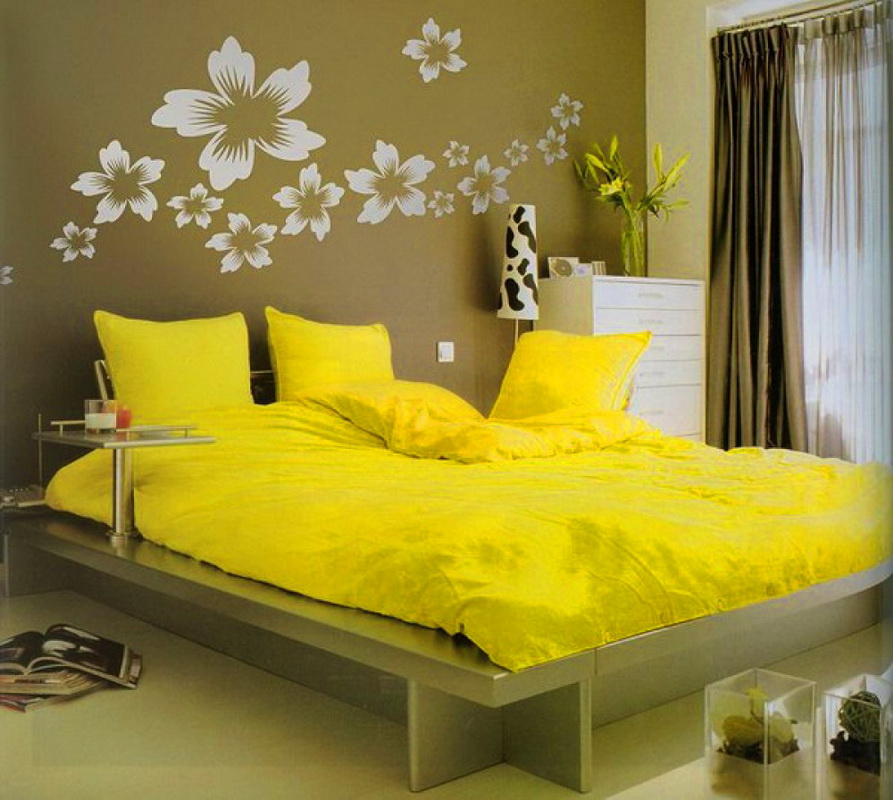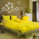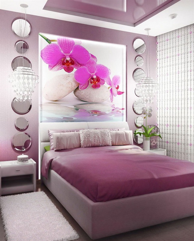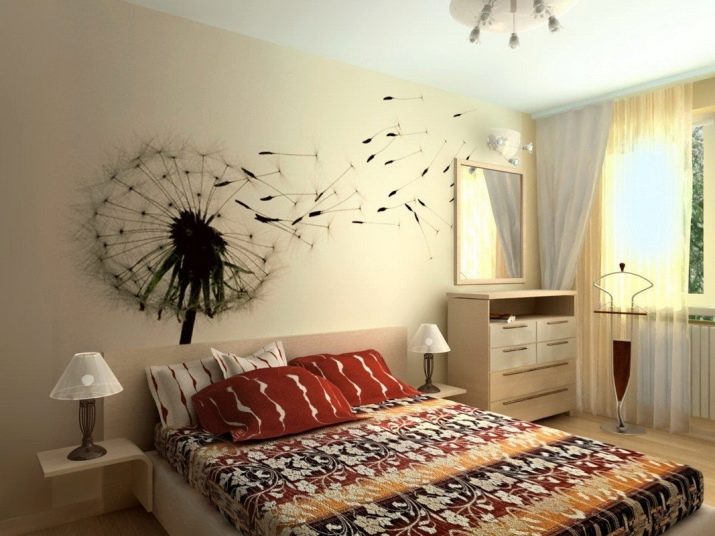 - Murals, vinyl stickers, unusual wallpapers and wallpapers will help harmoniously create the interior of your bedroom. Pay attention to interesting and annoying scenes that fit any style. Many people choose this method of decoration, because it is unique;