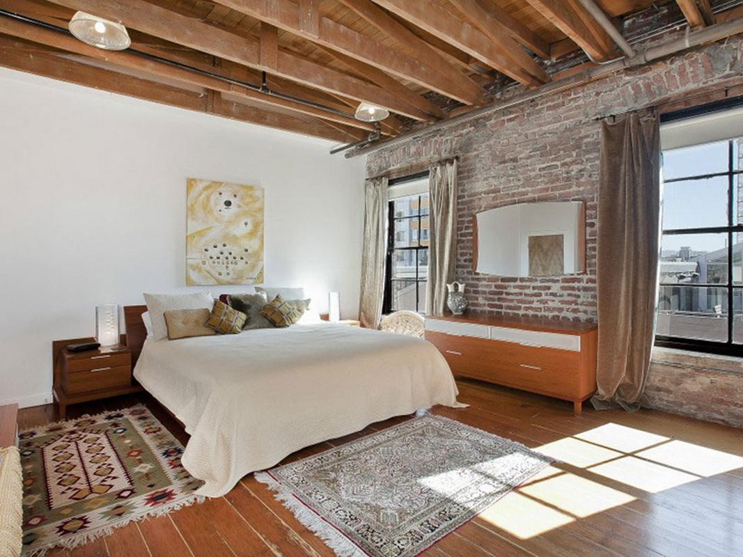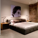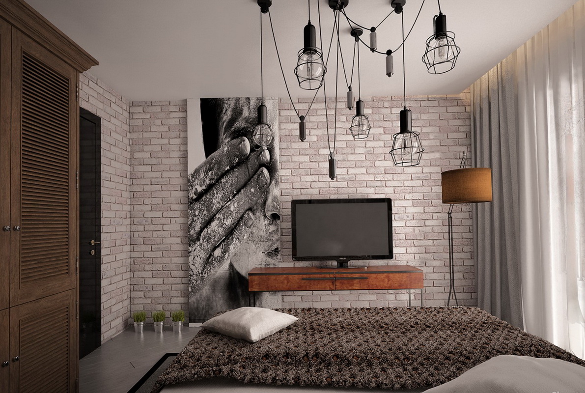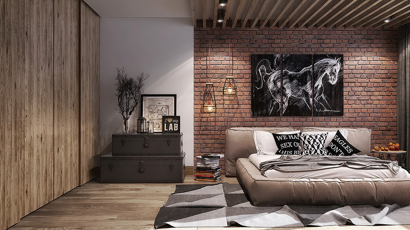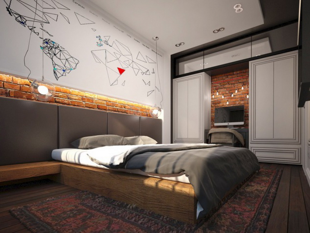 - Loft. These bedrooms choose creative nature. In such an interior is not provided for placing the canvas above the sleeping bed, because in the style of acceptable abstract and unusual materials. Pay attention to products from fabric, leather or metal.