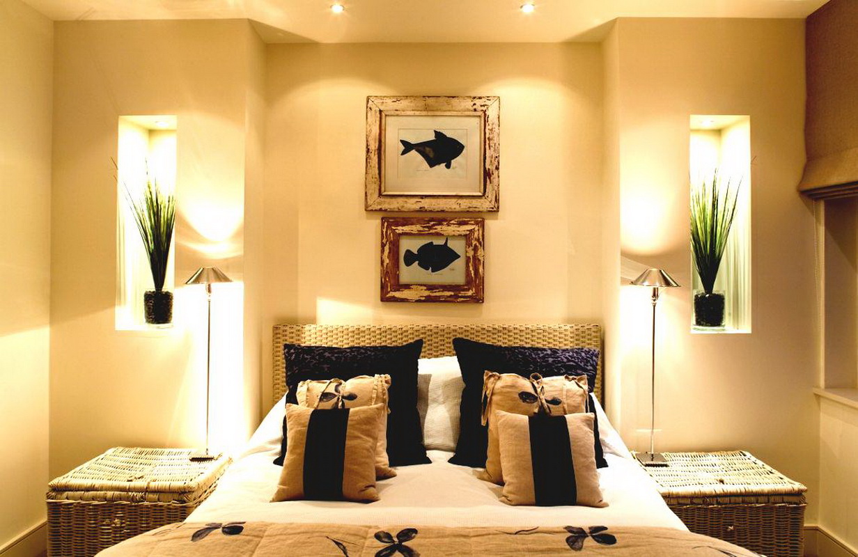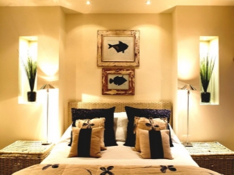 In addition to paintings, you can choose other elements of decor. The rationalist will like the decoration of the walls using a night lamp,which Feng Shui will be responsible for strengthening family relations or the attraction of the opposite sex (if you are single). If we talk about the features of this element, then choose a pair of lamps. They will give the bedroom a greater amount of light, as well as double the positive energy.