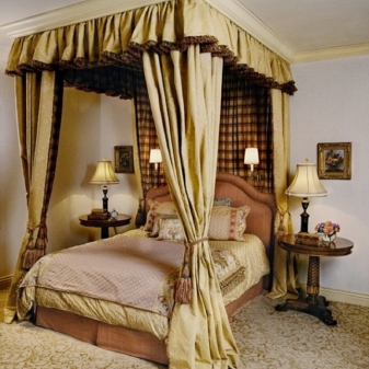 Some people additionally trim them with leather or textiles. However, this decor is considered to be quite expensive, so only the headboards of the bed are made with it.