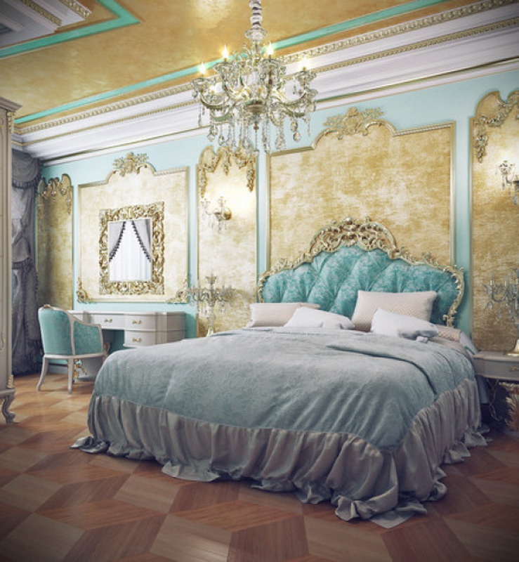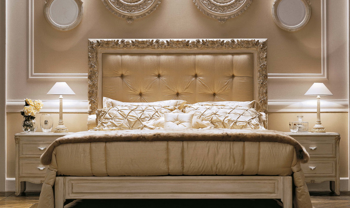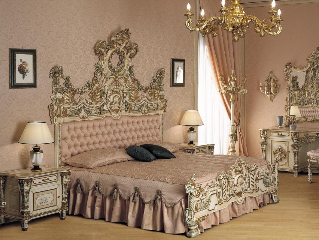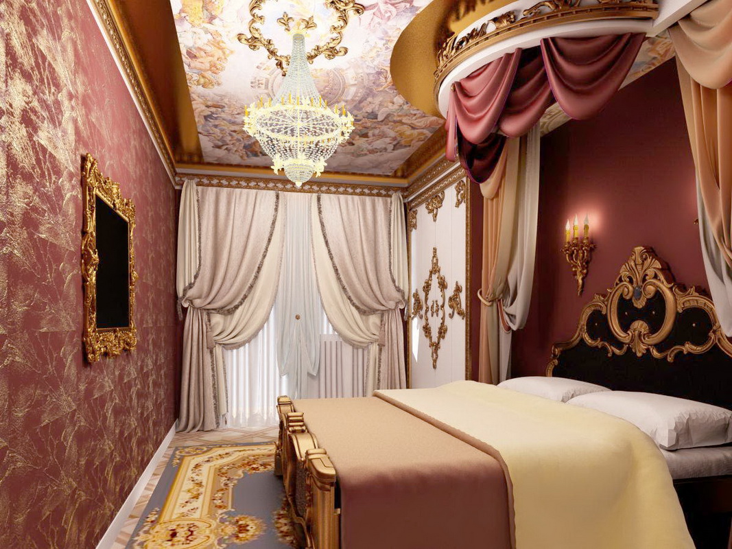 - Classic interior and baroque. In these areas are welcome images with portraits, paintings, in which there are family scenes, stucco, murals, pictures of pets and other options of a similar nature. Do not forget the ceiling. In the bedroom, this element should be flat.