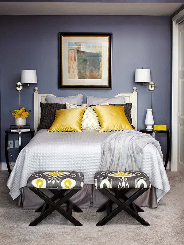 - With the help of pillows, you can create an original decor of the headboard. You can hang colorful elements or products with the same pattern across the wall instead of the headboard. The number of pillows depends only on your imagination;