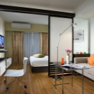 If the chandelier is inevitable, hang it in the living area and place a couple of floor lamps in the bedroom - this will be enough to read before going to bed or to create a cozy atmosphere.