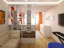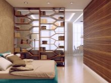 To protect the rest area from the reception area will help the rack to the ceiling or almost to it. Well, if he will have open shelves and will be narrow. as massive cumbersome "eat up" valuable meters.