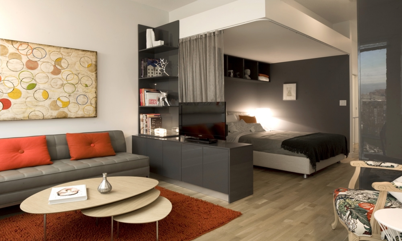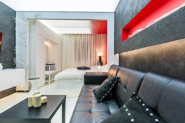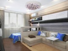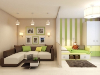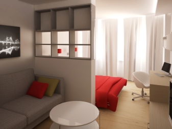 One-room apartment is not a reason to despair and forget about meetings with friends. Accommodation area of 18-19 square meters. m is able to fit into a full-fledged bedroom and a room for receiving guests, if you competently zone the space and place accents.
